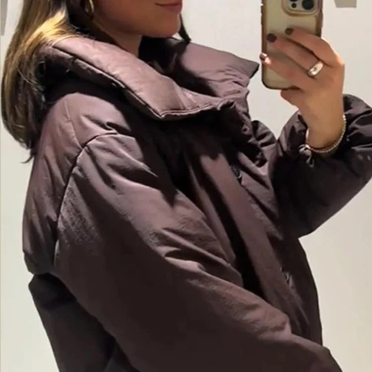 Hold deg varm og stilig gjennom vinteren med denne moderne vinterjakken med ståkrage og sidesnøring. Jakken kombinerer komfort, feminint snitt og trendy streetwear-stil, og er perfekt for deg som vil se bra ut uten å ofre varme og bevegelighet.